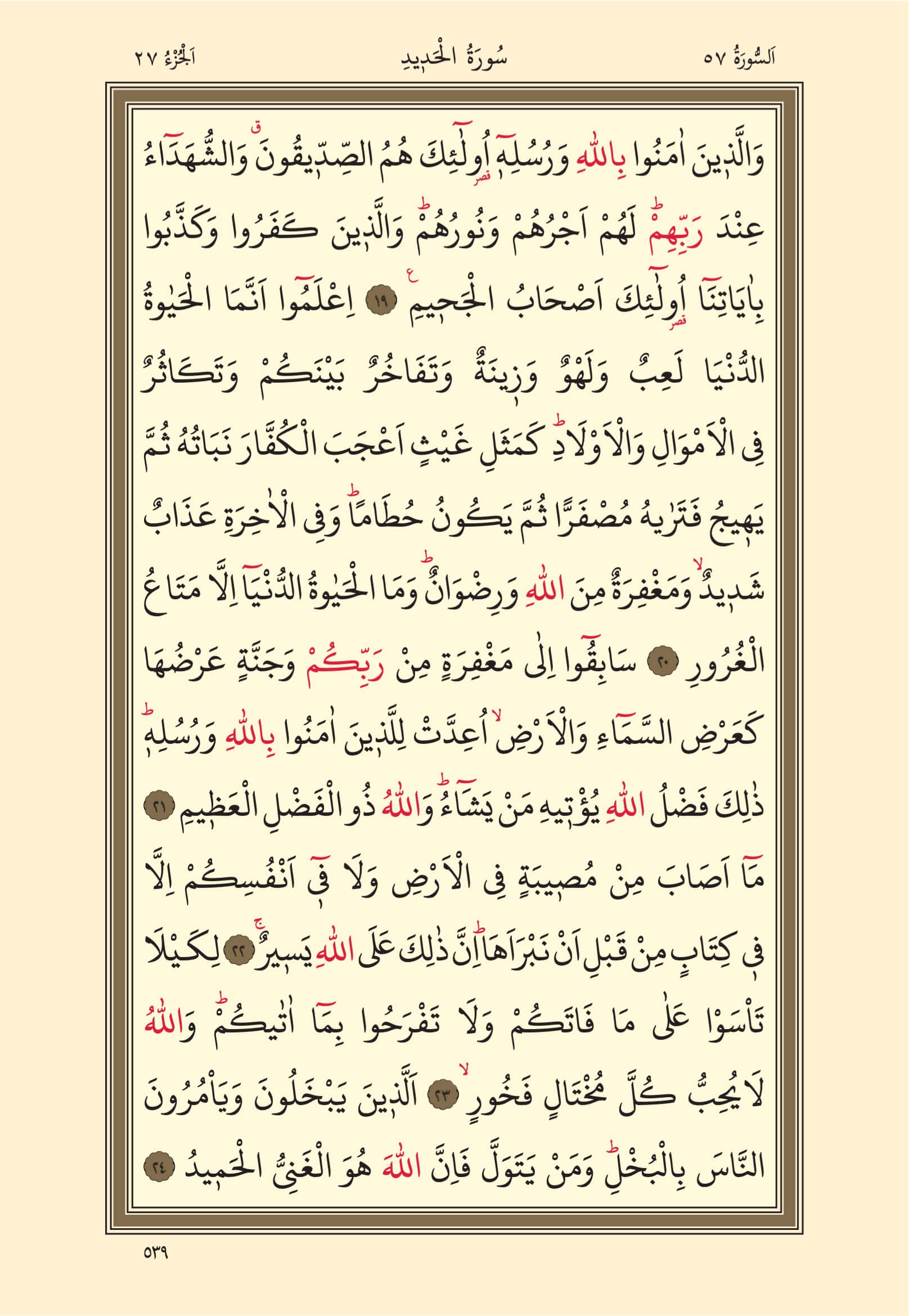 27. Cüz, 539. Sayfa, Hadid Suresi | Kuran-ı Kerim Oku