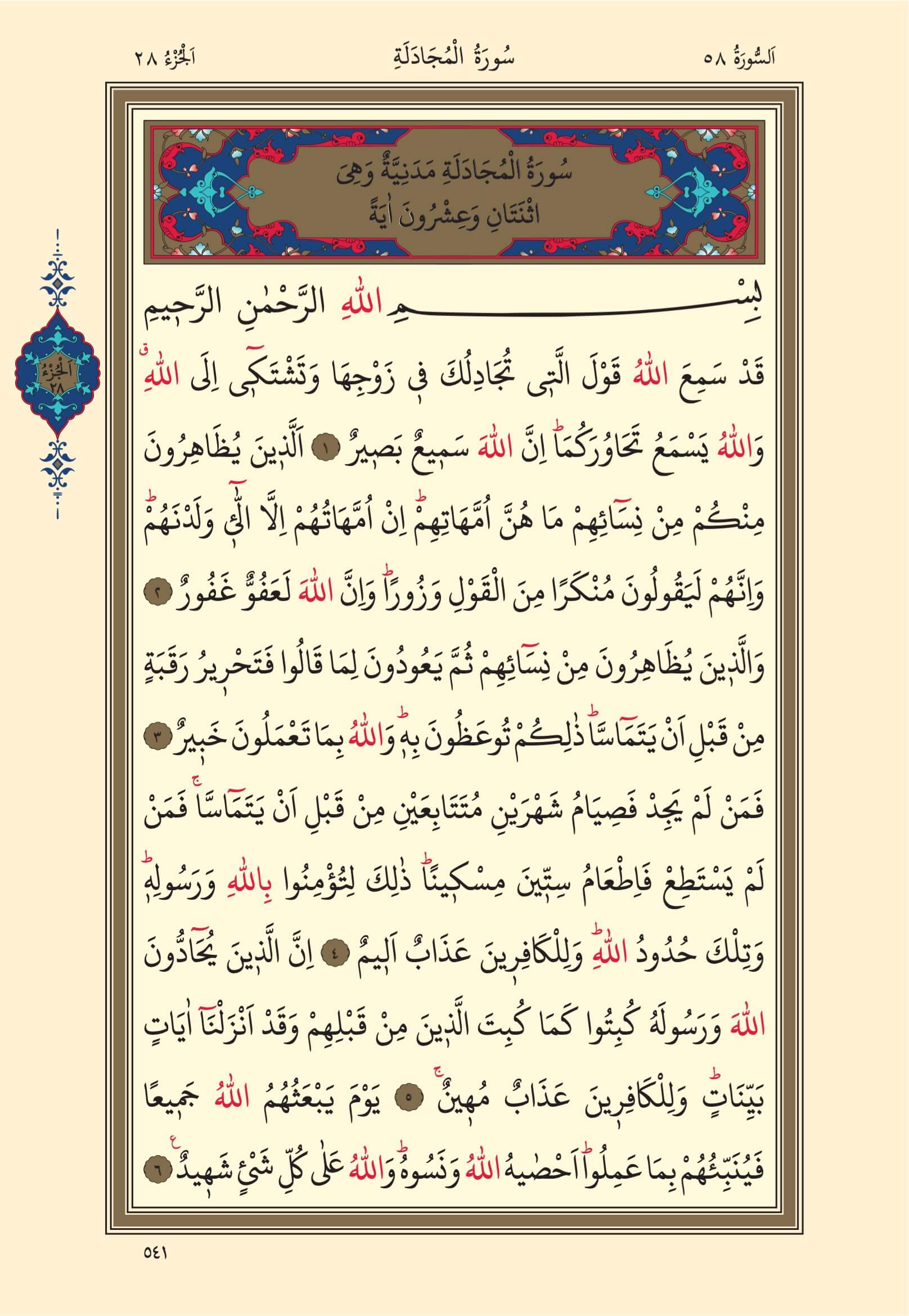 Mücadele Suresi – 541. Sayfa, – 28. Cüz - 1. Hizb