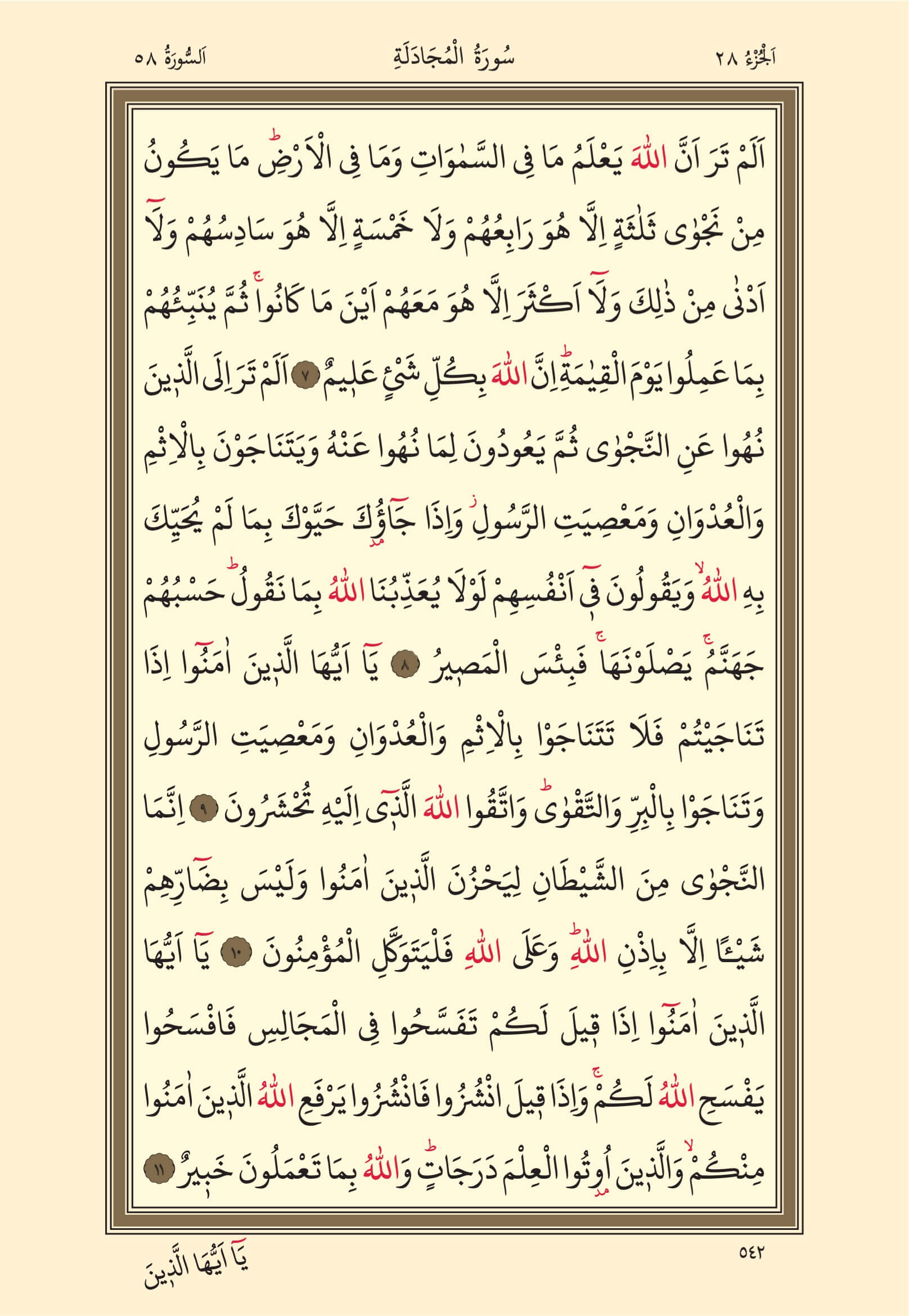Mücadele Suresi – 542. Sayfa, – 28. Cüz - 1. Hizb