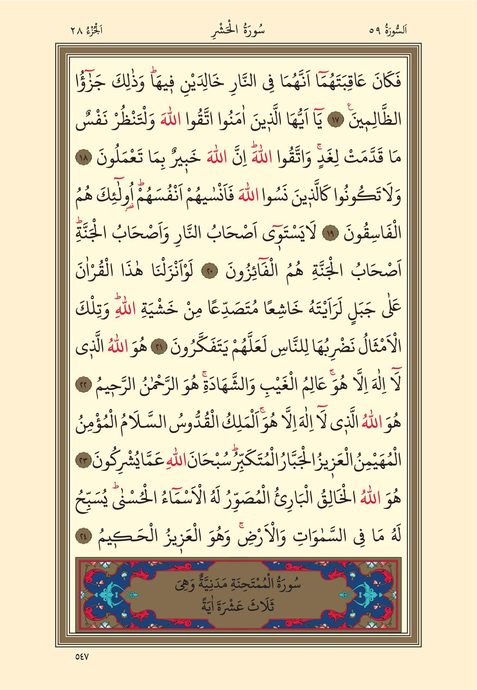 Haşr Suresi – 547. Sayfa, – 28. Cüz - 2. Hizb