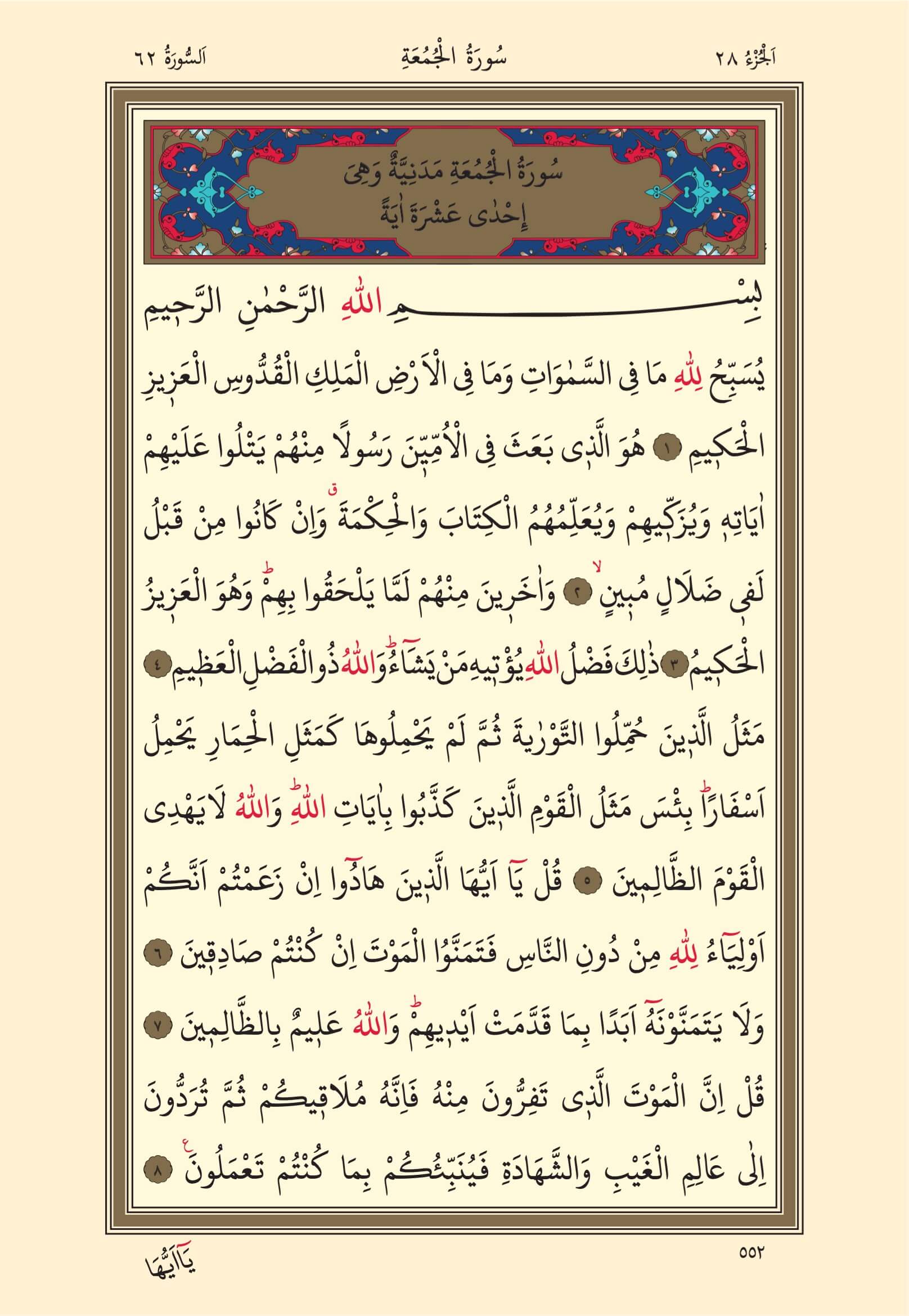 Cuma Suresi – 552. Sayfa, – 28. Cüz - 3. Hizb