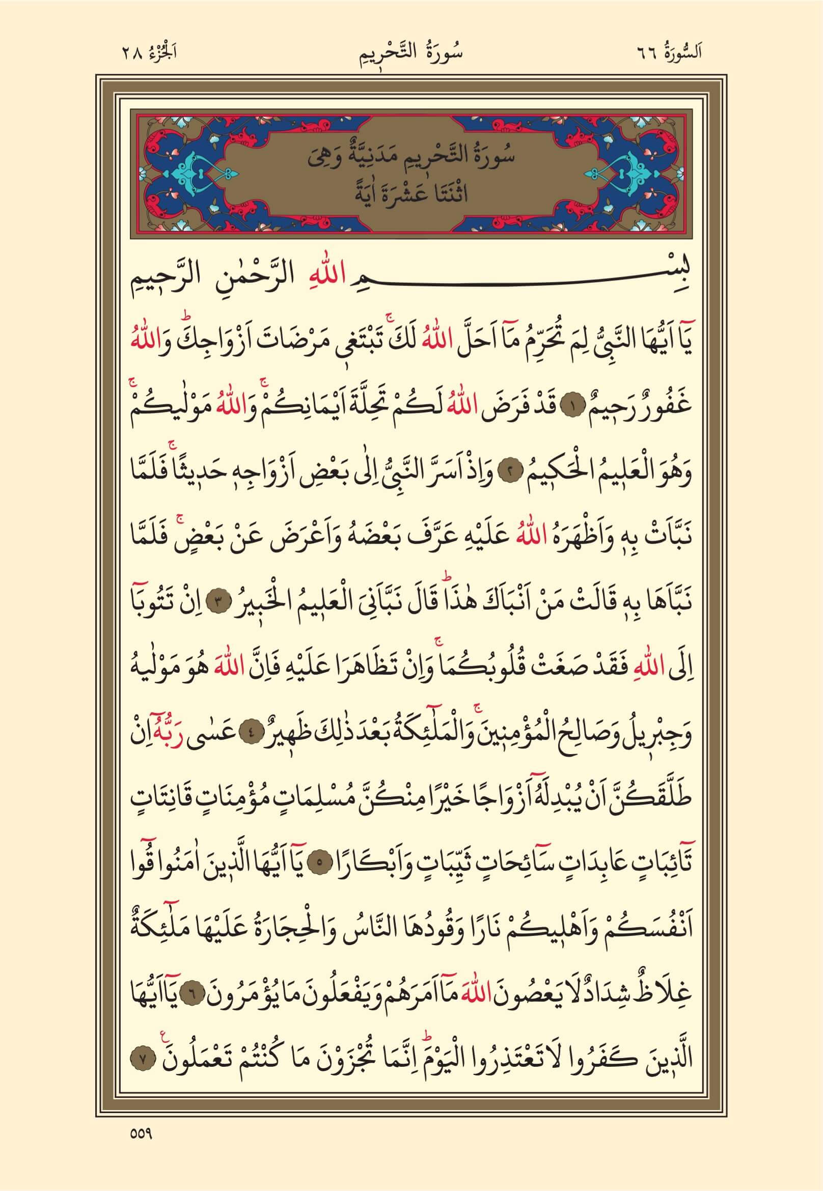 28. Cüz, 559. Sayfa, Tahrim Suresi | Kuran-ı Kerim Oku