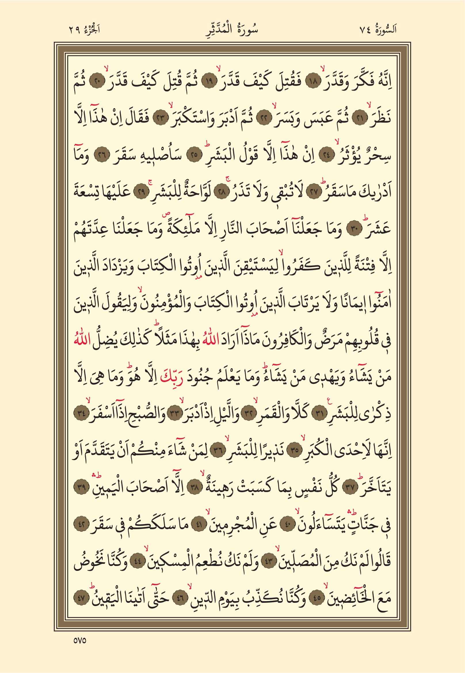 29. Cüz, 575. Sayfa, Müddessir Suresi | Kuran-ı Kerim Oku