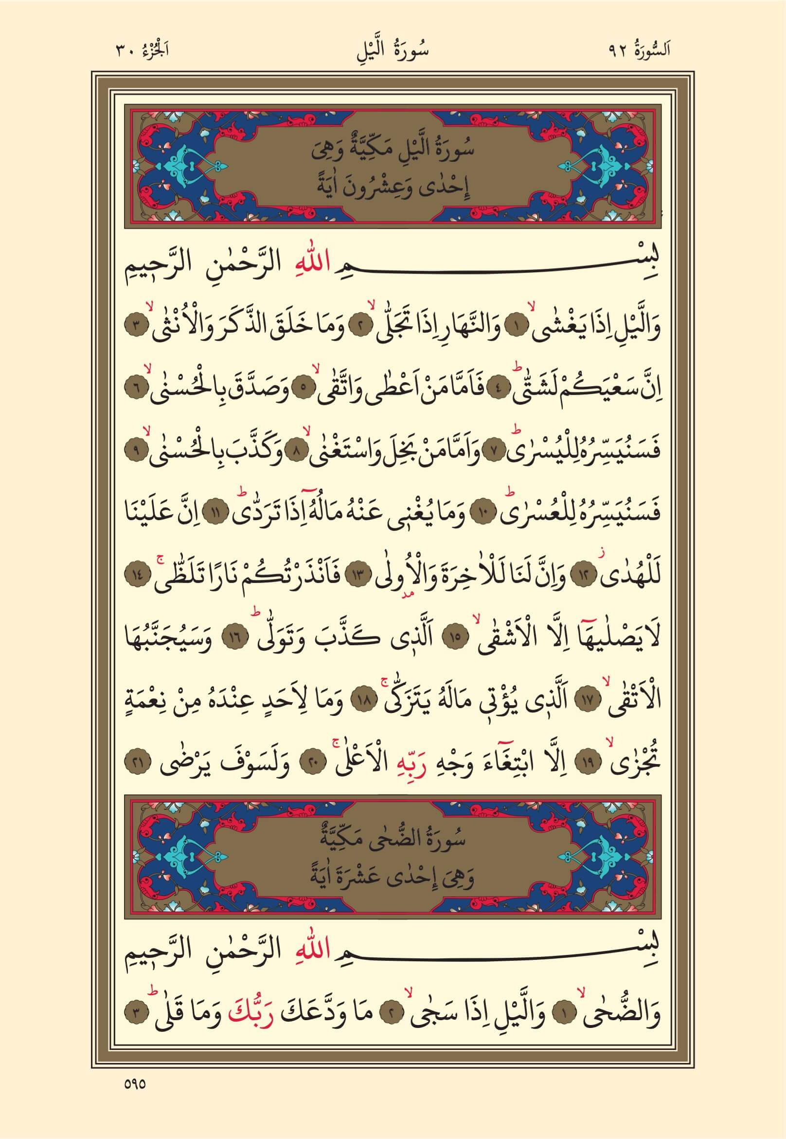 30. Cüz, 595. Sayfa, Leyl ve Duha Sureleri | Kuran-ı Kerim Oku