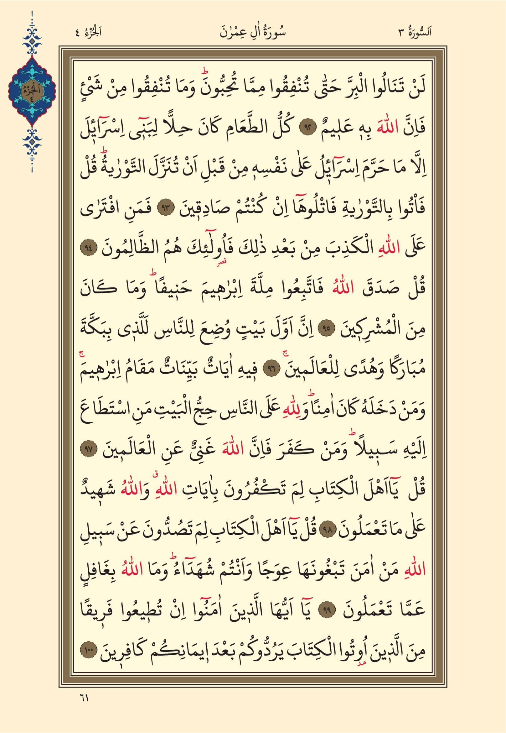 4. Cüz, 61. Sayfa, Al-i İmran Suresi | Kuran-ı Kerim Oku