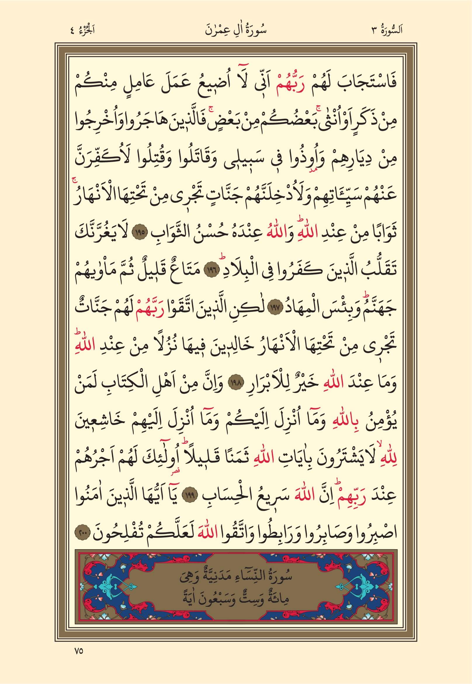 4. Cüz, 75. Sayfa, Al-i İmran Suresi | Kuran-ı Kerim Oku