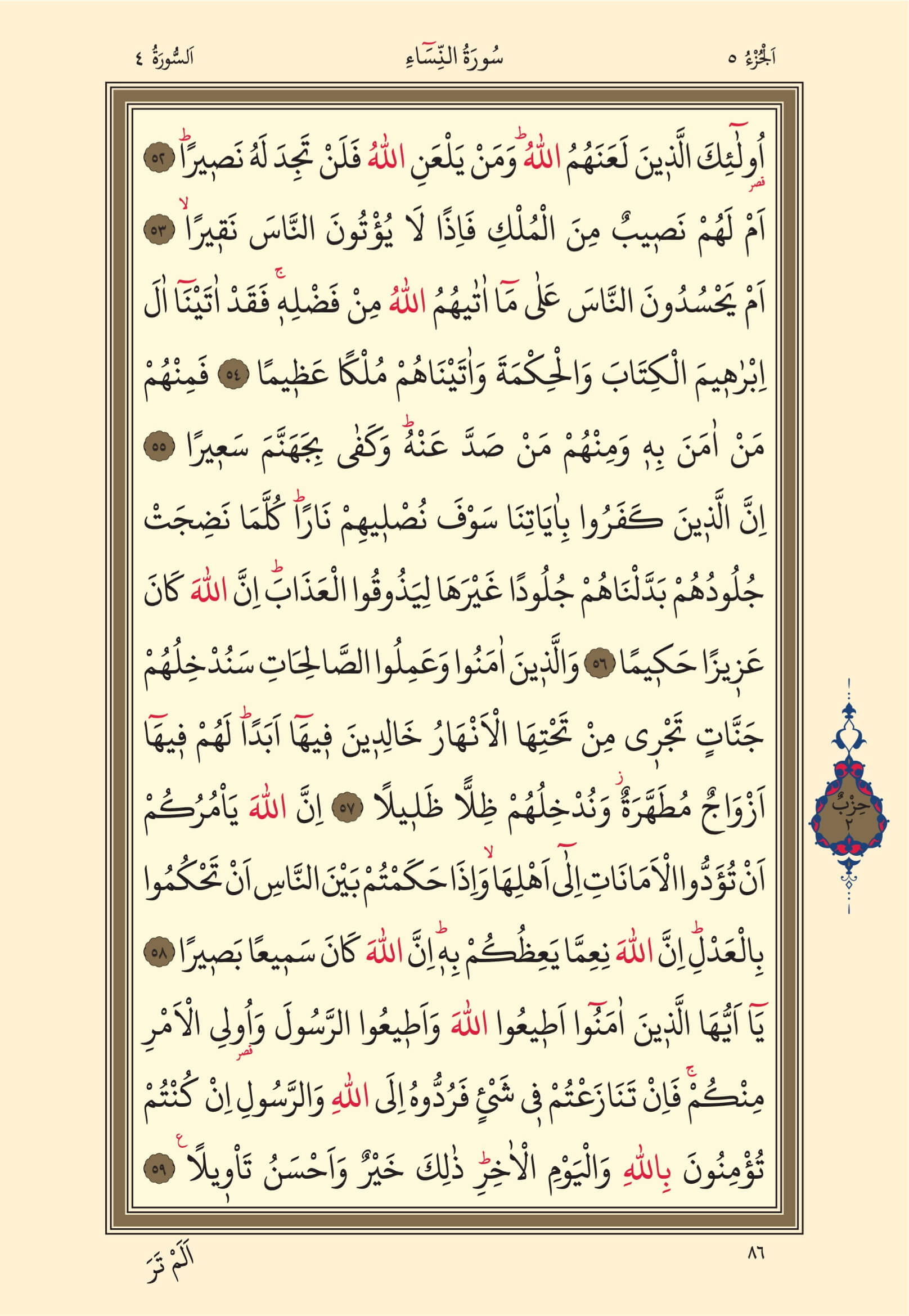 Nisa Suresi – 86. Sayfa, – 5. Cüz - 2. Hizb