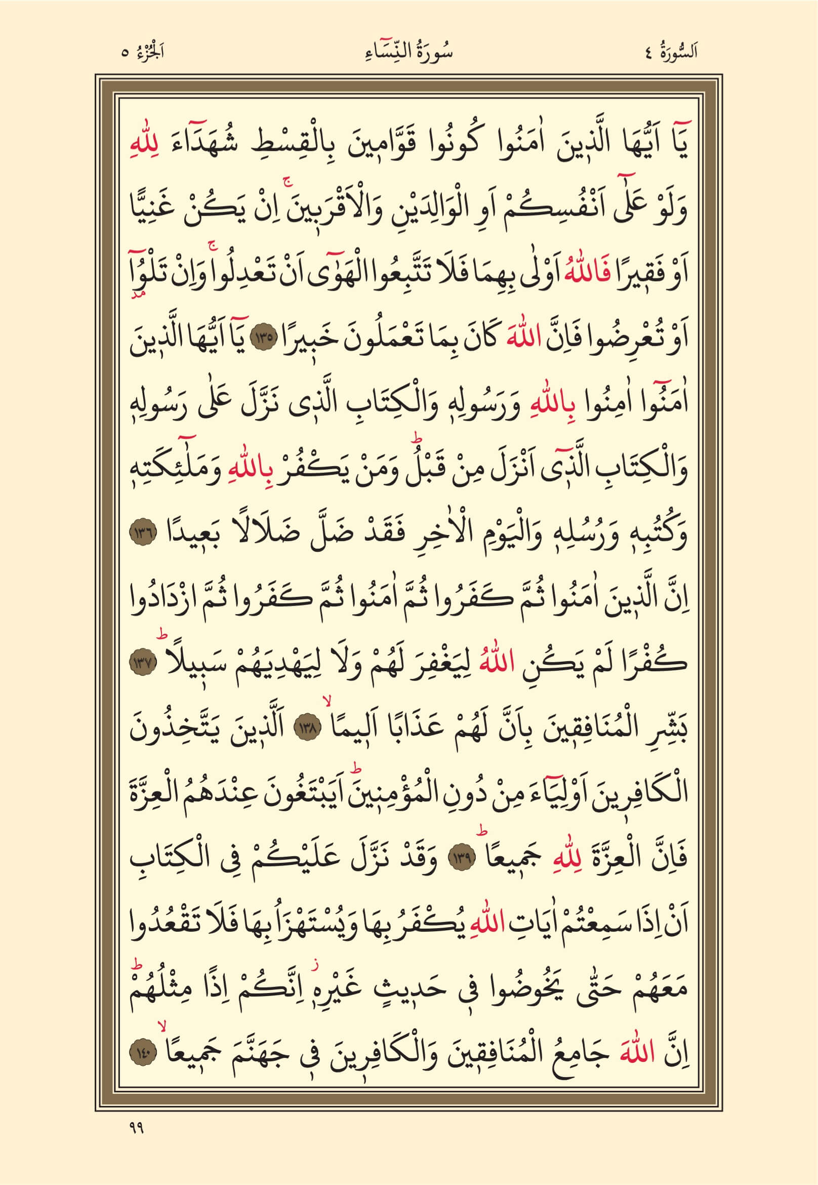 5. Cüz, 99. Sayfa, Nisa Suresi | Kuran-ı Kerim Oku